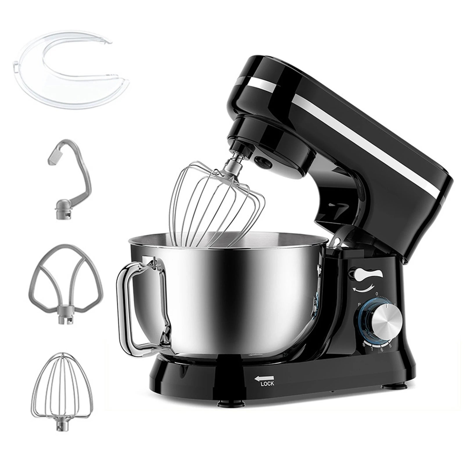 5. Easy to Use and Clean: Tilt-head design mixer allows easy to install or uninstall bowl, and convenient to add ingredients. The attachments are dishwasher safe, the main body can not be washed in water, just wipe it with a soft cloth.