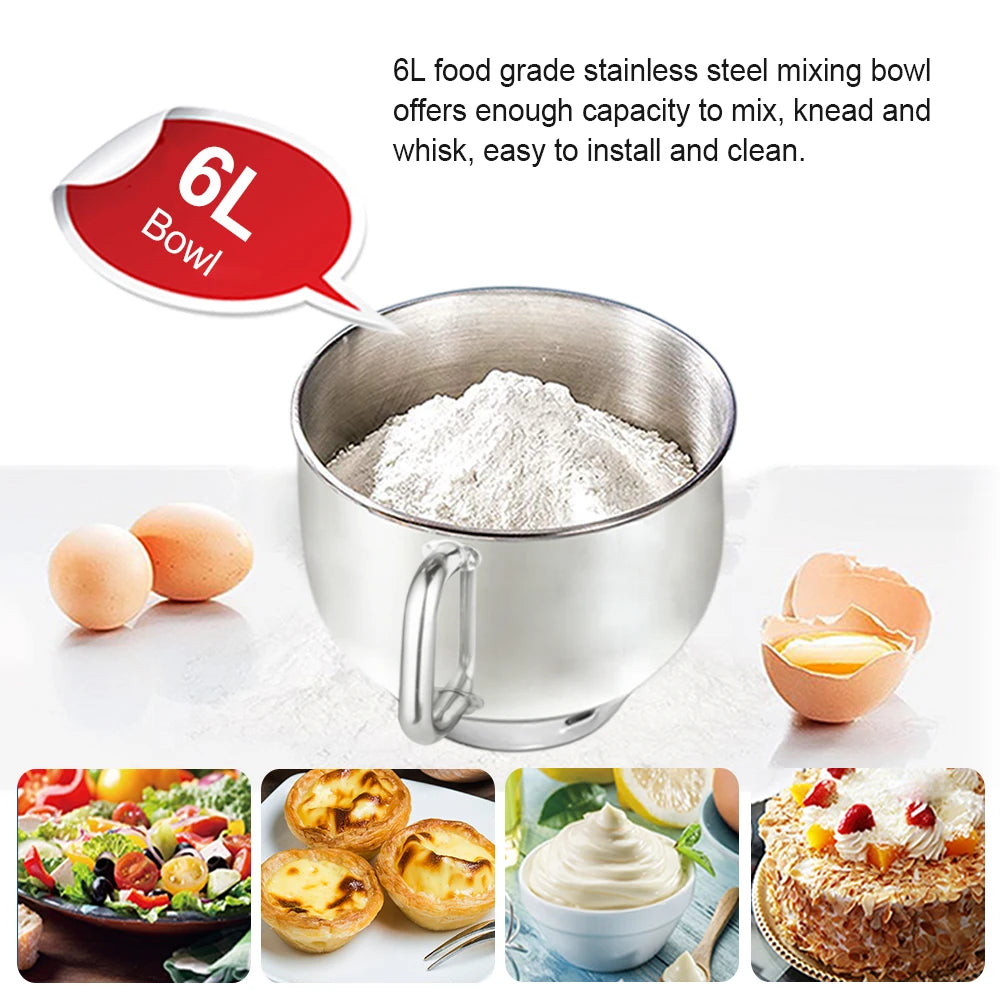 Stand Mixer,6L 800W 12-Speed Tilt-Head Food Mixer, Die-cast aluminumKitchen Electric Mixer with Dough Hook, Wire Whip & Beater